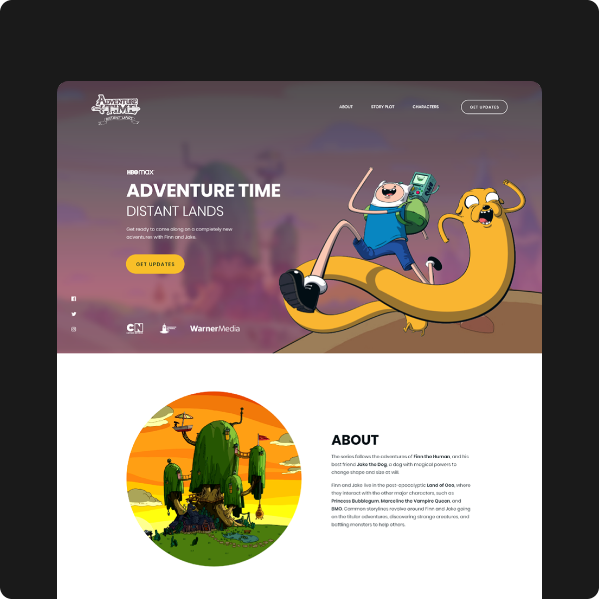 J’ai collaboré avec un designer pour donner vie à une page web promotionnelle dédiée à notre série préférée, Adventure Time. J’ai livré un design entièrement responsive avec des contenus dynamiques, intégrant de manière fluide une fonctionnalité d’abonnement à la newsletter afin de tenir les fans informés des dernières aventures.